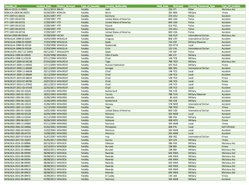 casualties_...lines do the same for different categories of UN personnel - the code to the right of
