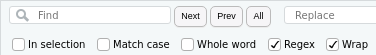 Luckily, I was able to take advantage of RStudio’s built in support for regular expressions to save myself from having to manually change each line of code that either loaded or saved a file. Regular expressions are a powerful way to search through and manipulate text. You can activate them in RStudio’s find and replace dialog by checking the Regex box: